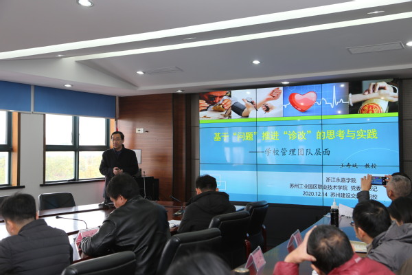 接着,会议邀请苏州工业园区职业技术学院党委副书记王寿斌教授作了题为《基于“问题”推进“诊改”的思考与实践》的讲座。王教授认为,“诊改”就是用“工匠精神”打磨一所学校。围绕“诊改”定义,他首先列出了人们对于职业教育特征的共识,指出了职业学校在服务经济社会、推动学生发展、强化教师专业品质、推进自身品牌化建设方面的重要任务。为了更好地完成这些任务,职业学校需把“诊改”作为一项常规管理工作,及时诊断并消除职业学校内部的制度缺陷、综合隐患以及错误做法。