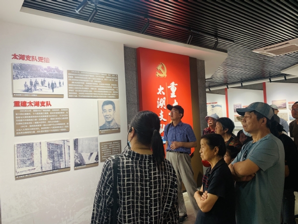 在光福新四军太湖游击队纪念馆,党员们通过观看相关视频、图片与文物,了解了太湖游击队在面对国内外敌人围攻时坚持武装斗争、保存革命火种的光辉事迹,深刻感受到了薛永辉司令和其他五位战士在“冲山之围”中表现出的视死如归精神及其与苏州本地百姓的鱼水深情。
