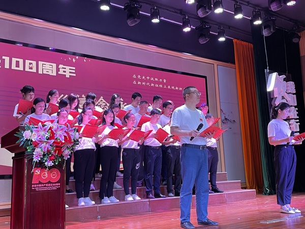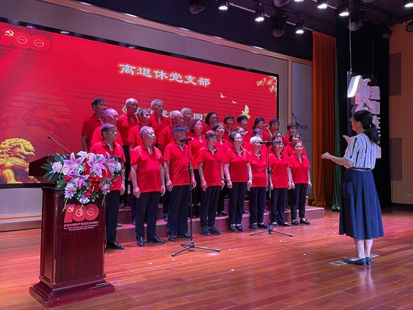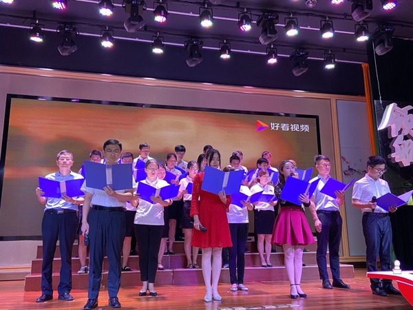 在第二个环节中,学校8个支部贡献了精彩的朗诵表演活动。朗诵结合视频影像,采用丰富多样的形式,表现了师生对于党诚挚的情感。朗诵结束后,离退休党支部也献上了《我和我的祖国》红歌表演,表达了离退休党员对于建党100周年的由衷喜悦。