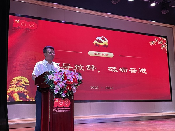 最后,郝云亮校长作了大会总结。他点评了各支部的朗诵节目,认为各支部准备都相当充分,表演形式十分新颖,内容上能够结合职业教育实际情况,整体效果良好。他接着对全体党员提出三点要求:要坚持道路自信,要围绕在党的周围不断攻坚克难;要不忘初心、牢记使命,全心全意为人民服务,要以学生的成长作为检验工作成效的标准;要坚持立足本职岗位,投身教育高质量发展的事业中,在服务他人中展现自身价值。