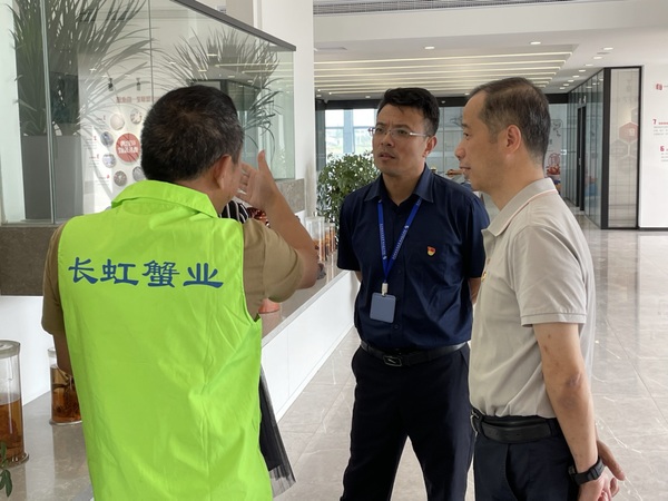 到达昆南村后,各位领导先后实地走访调研了昆南村党群服务中心、新泾浜千村美居建设点、长虹蟹业阳澄湖螃蟹高标准养殖示范基地、和美昆南高标准农田种植试验区等,了解村里的基本情况和生活状况,也看到了新农村的变化。来到长虹蟹业时,工作人员向大家介绍了长虹蟹业经营情况,他们以“诚为本、信为上、业为基”为经营理念,现已由传统向智能化养蟹手段转变,并坚持产销连接的运营方针,带动周边村民共同富裕,获得了多项省级和国家级荣誉。
