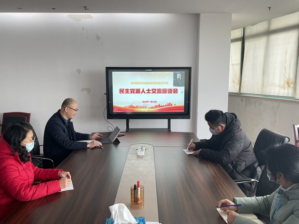 2022年11月16日下午,我校党委统战委员谢永东组织学校民主党派邵劲峰等三名老师召开了交流会,统战工作人员也参加了此次座谈会,谢永东同志还向三位民革党员宣讲了党的二十大精神。
