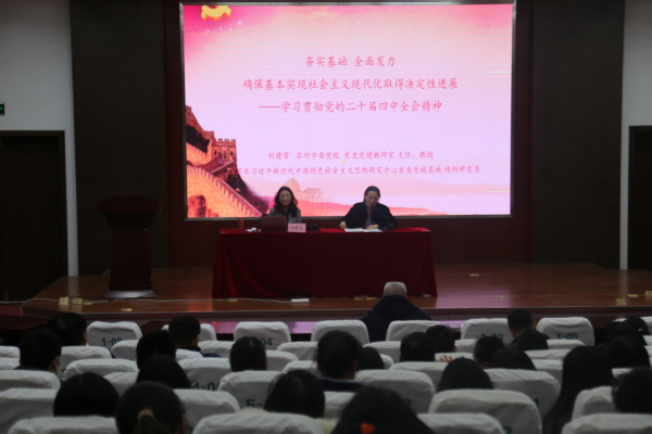 为深入学习贯彻党的二十届四中全会精神,切实凝聚全校教职员工的思想共识与行动合力,2025年12月19日,学校在国际教育园校区学术报告厅东厅举办了“党的二十届四中全会精神”专题学习讲座。讲座由学校党委副书记、纪委书记汪丽丽主持,学校校长万烨锋出席活动,全体教职工参与本次专题学习。